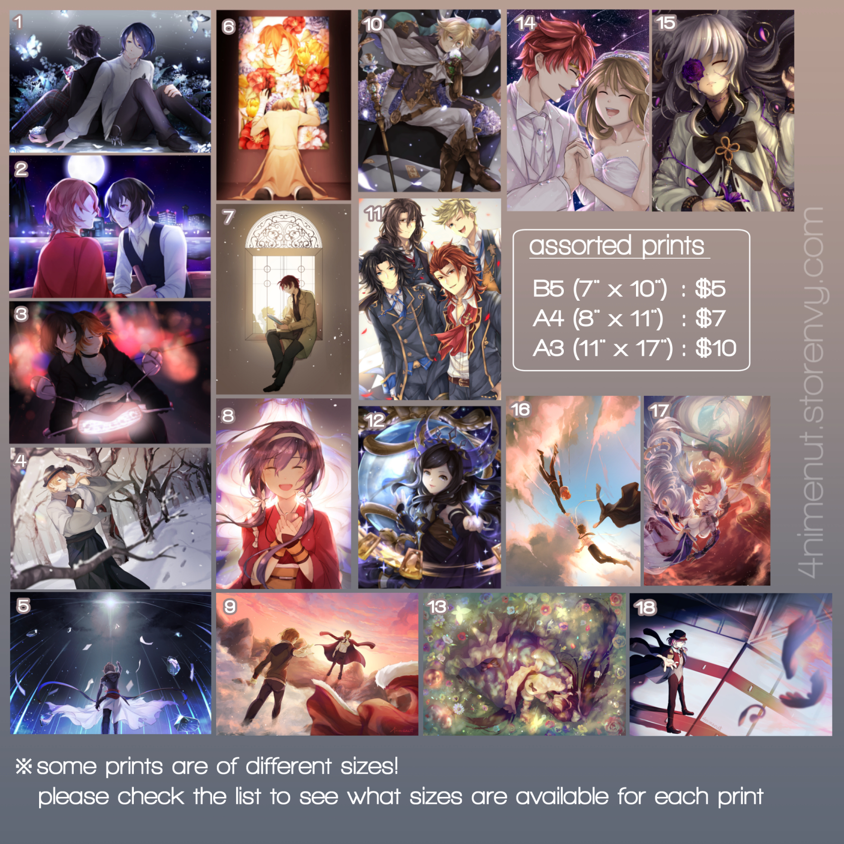 Please note that this is a listing for A4/B5 prints. There is a separate listing for A3 and newer prints!